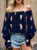 Printed Round Neck Smocked Flounce Sleeve T-Shirt
